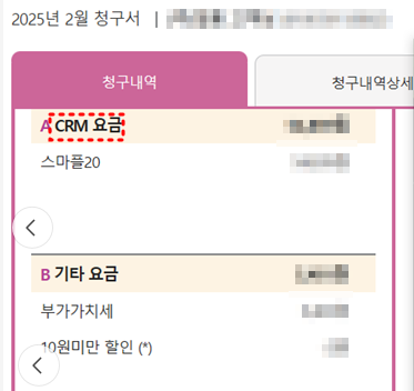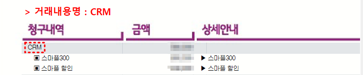 스마플은 유플러스 상품 중 CRM 상품에 등록되어 거래내용이 CRM으로 표기됩니다.